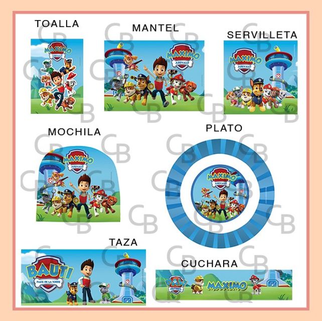 Toalla, mantel, servilleta, mochila, plato, taza, cuchara